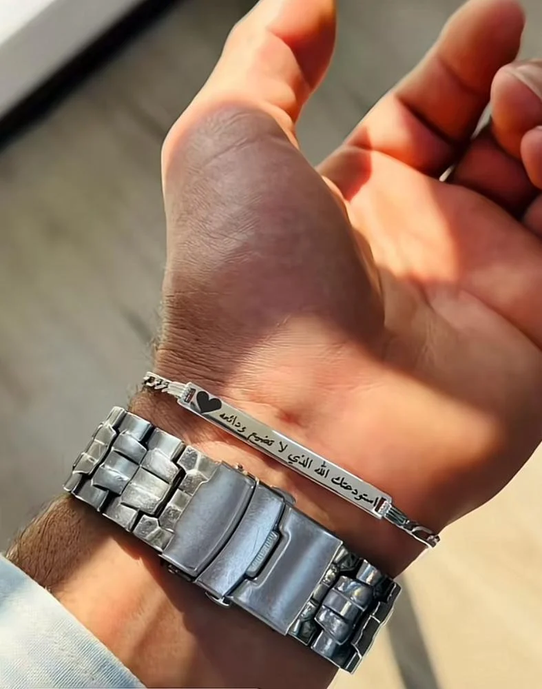 سبحة رجالي بالاسم مطلية فضة 925 خرز احمر